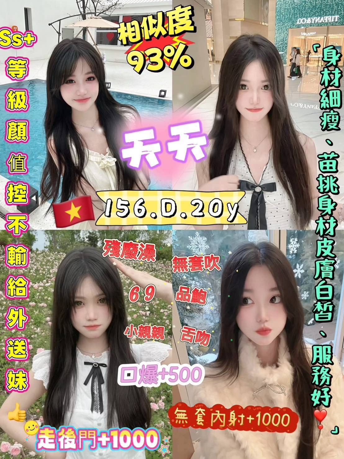 舌吻/無套吹/69/品鮑/按摩/殘廢澡/無套(內射)+1000