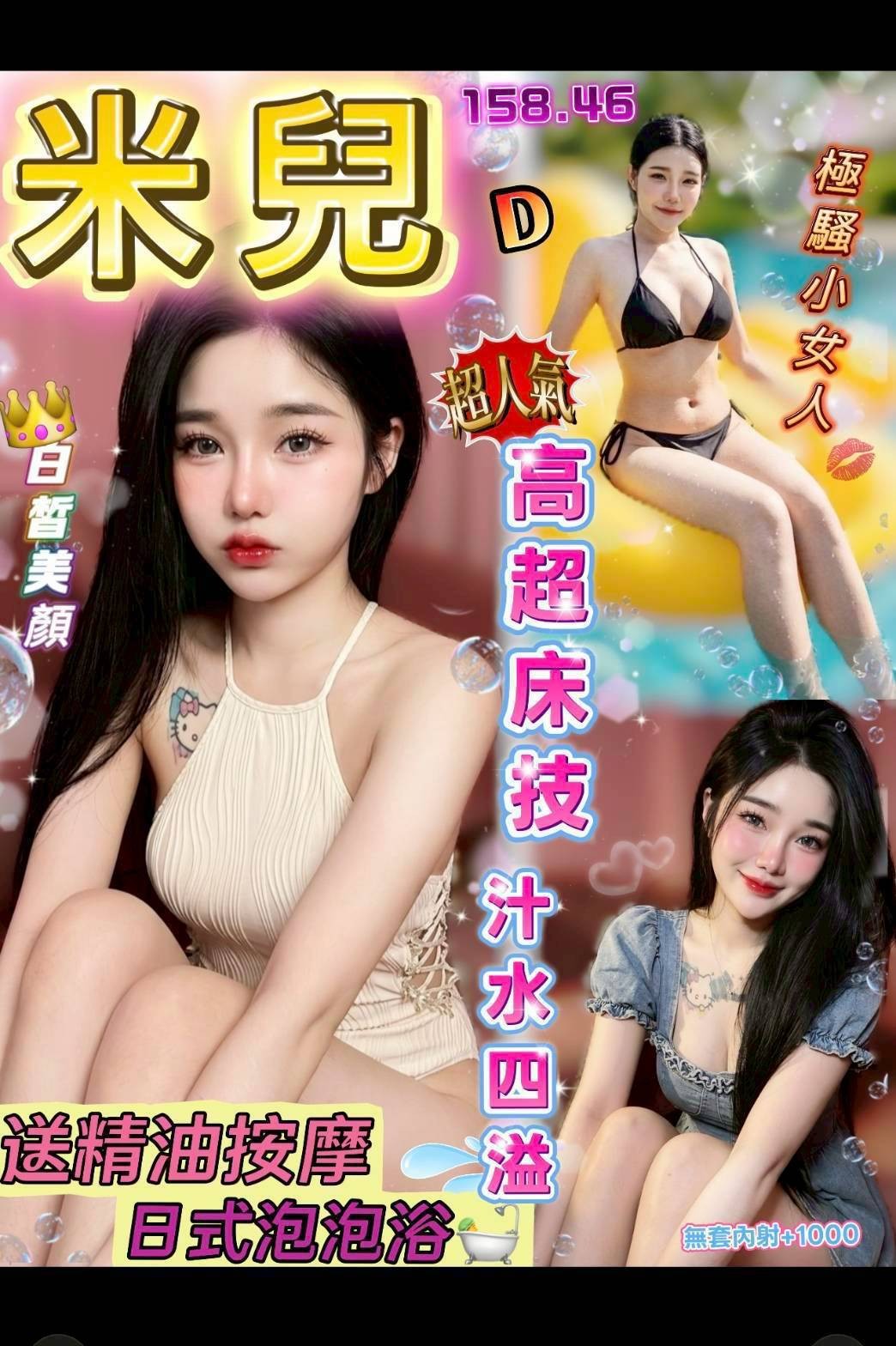 水中蕭/無套吹/戴套做/按摩/屁推/奶炮/舌吻/胸推/品鮑/69/舔蛋
